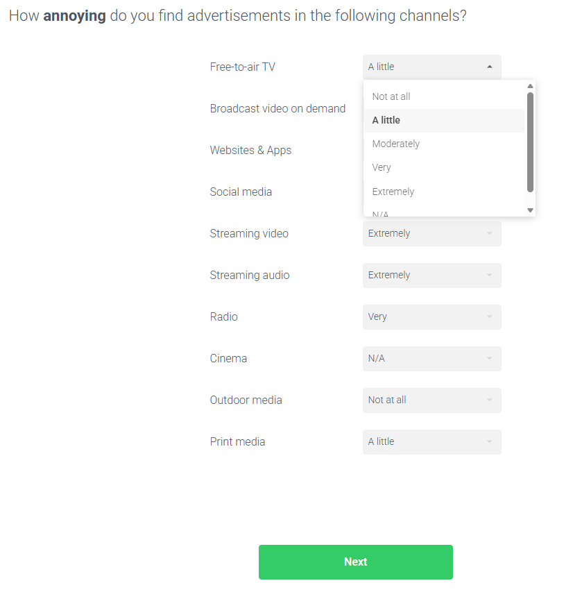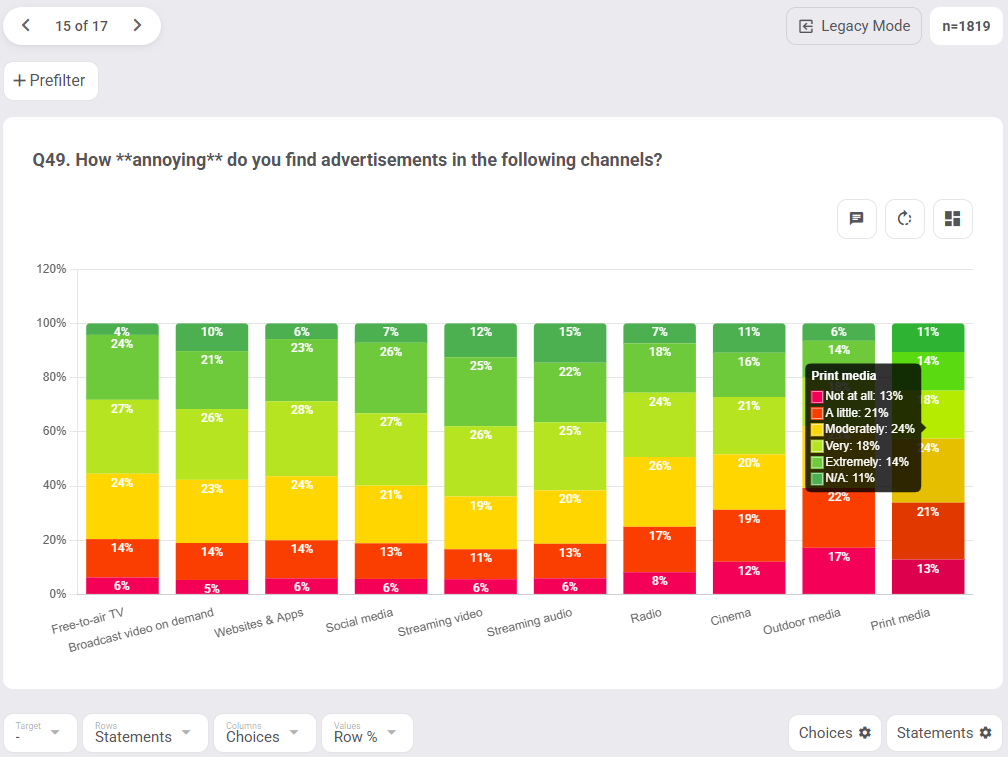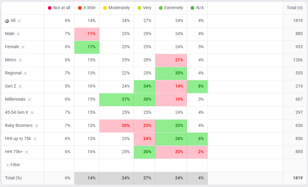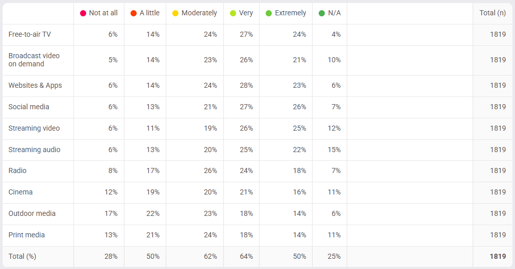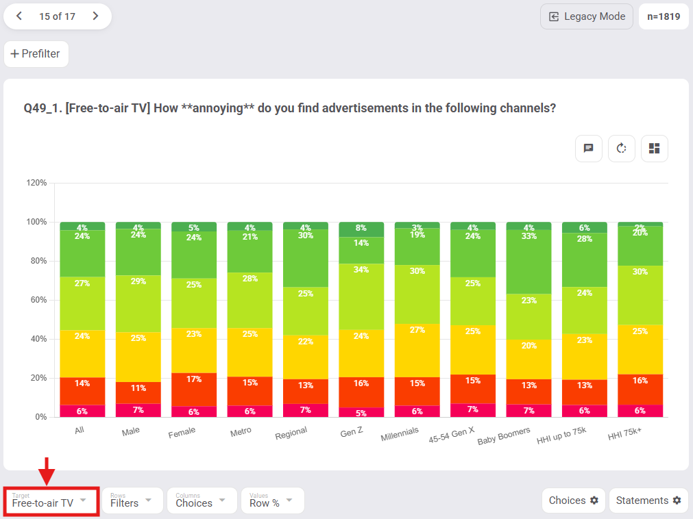 Below, we've targeted the "Free-to-air TV" statement and cut it by our gender, region, generation, and household income filters.