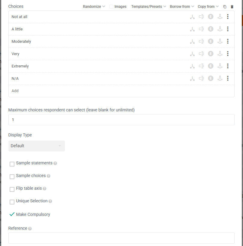 - Allow single choice (default) or multiple choices per statement in "Maximum choices respondent can select" field.