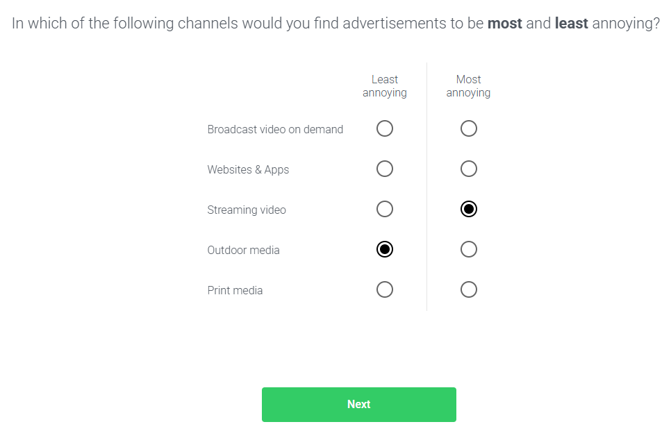 - Use 'Unique Selection' to force 1 unique choice p/statement, great for Max Diff Variation.