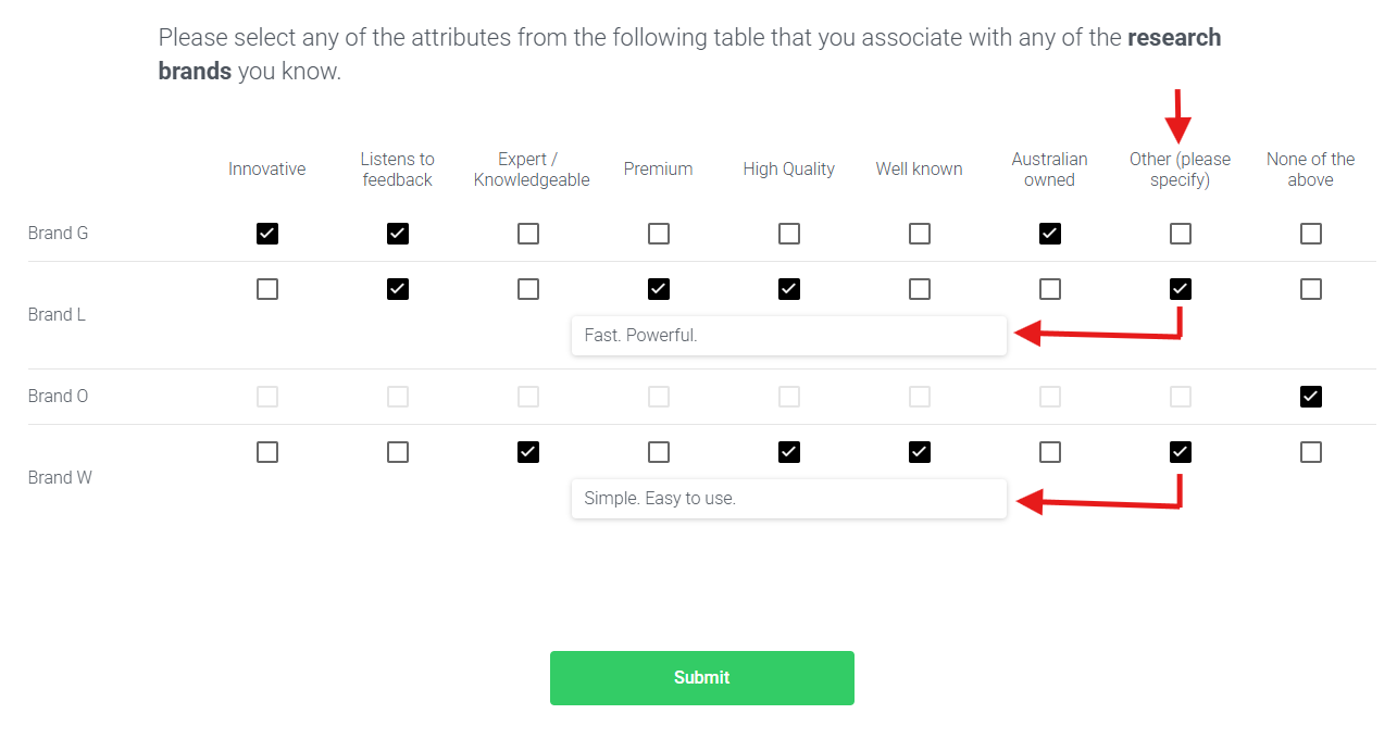 1C: Matrix Grid - Text Capture & Multiple Choice