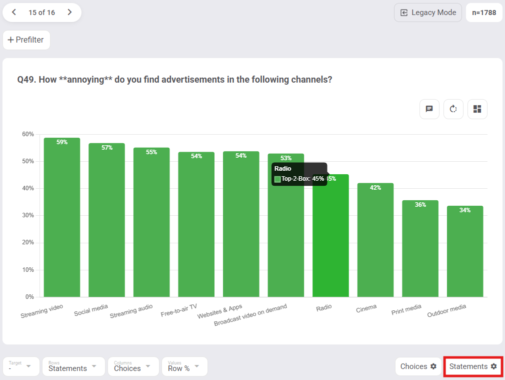 - Statements are like mini questions and appear in the rows by default (but can be flipped to columns)