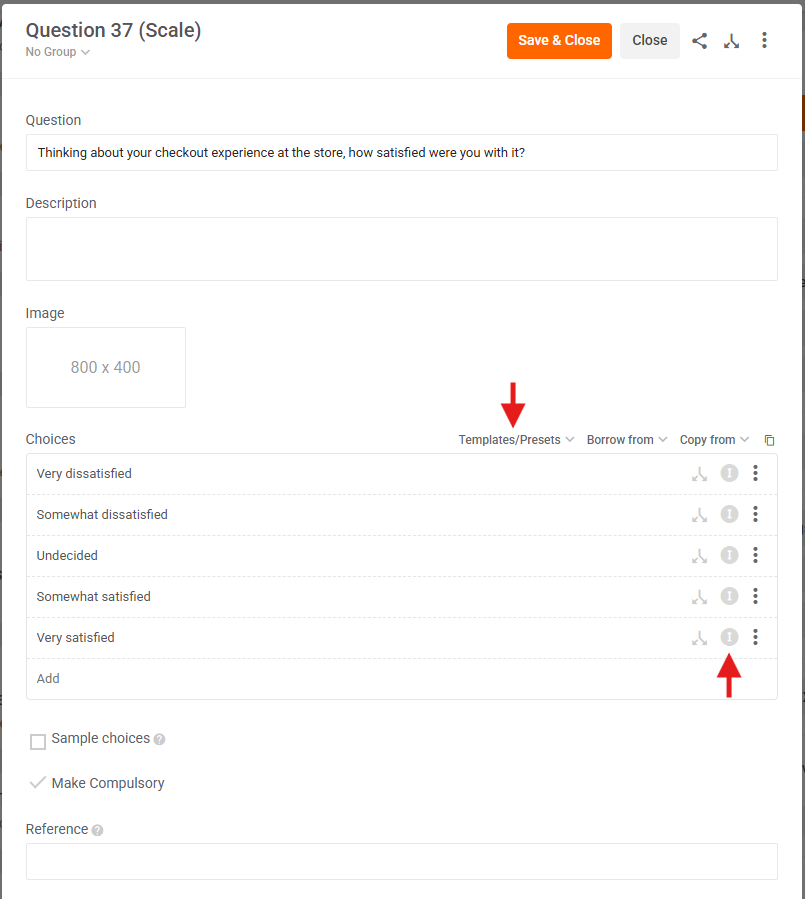 - Templates / Presets - click this to pick from popular 5- and 7-point scales, e.g.