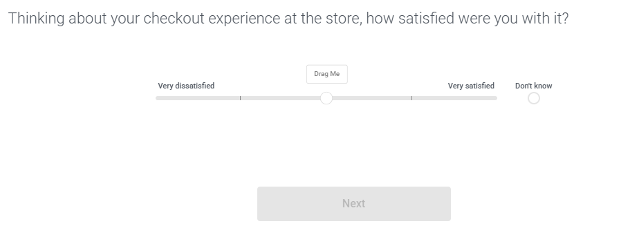 The Scale question type allows respondents to select one from a range of choices, but instead of choices appearing in a list, they appear on a horizontal slider scale. It's the 5th most used question type.