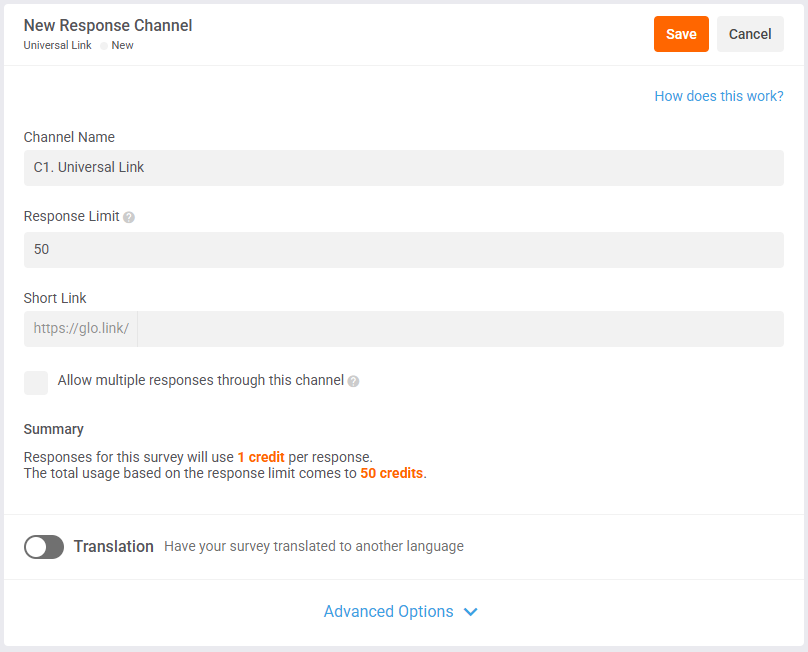 This will turn your channel link off and prevent respondents from taking your survey via this channel link. You can click Start at any time to turn your Universal Link channel back on.