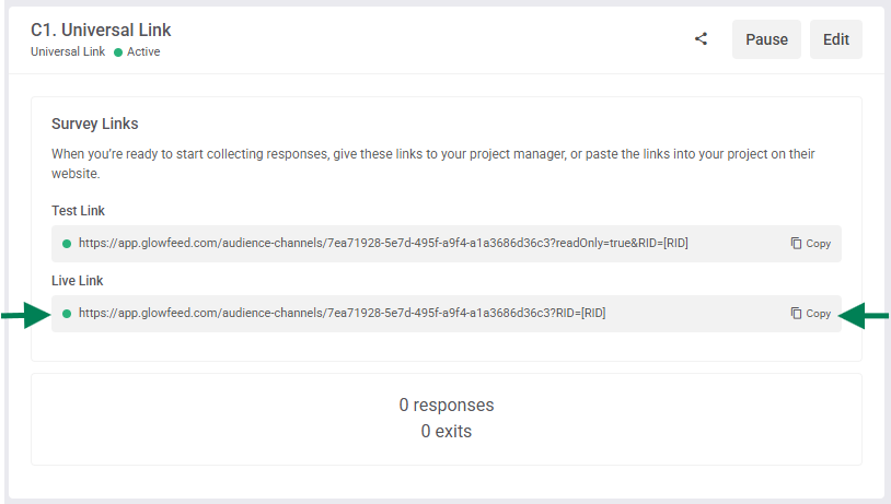 Copy the Live Link (not the Test Link) and share it with your panel partner, then watch as responses come in!