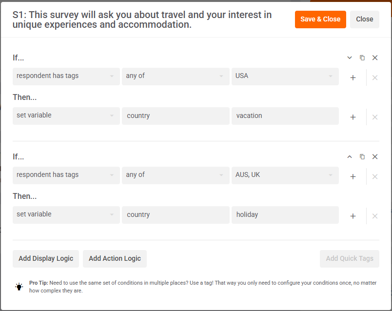 Note: Logic is only visible in Preview mode. Respondents will not see logic in live surveys.