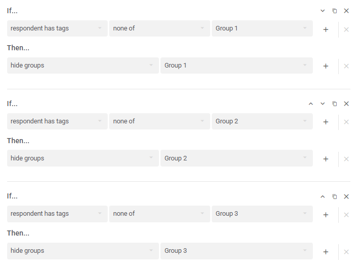 - In the If... dropdown, input your condition, e.g. if respondent doesn't have tags for Group 1