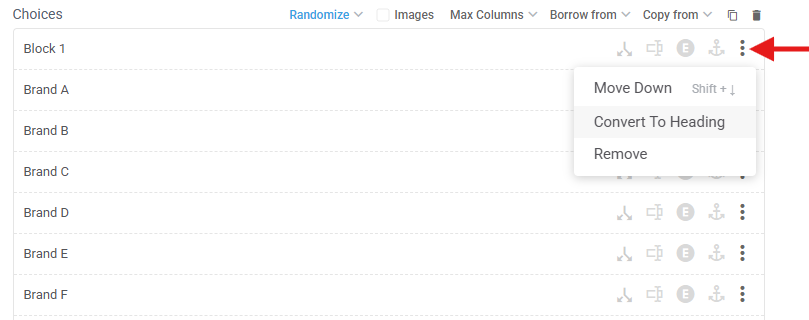 You can convert any option into a header within the 3-dot menu next to each option.