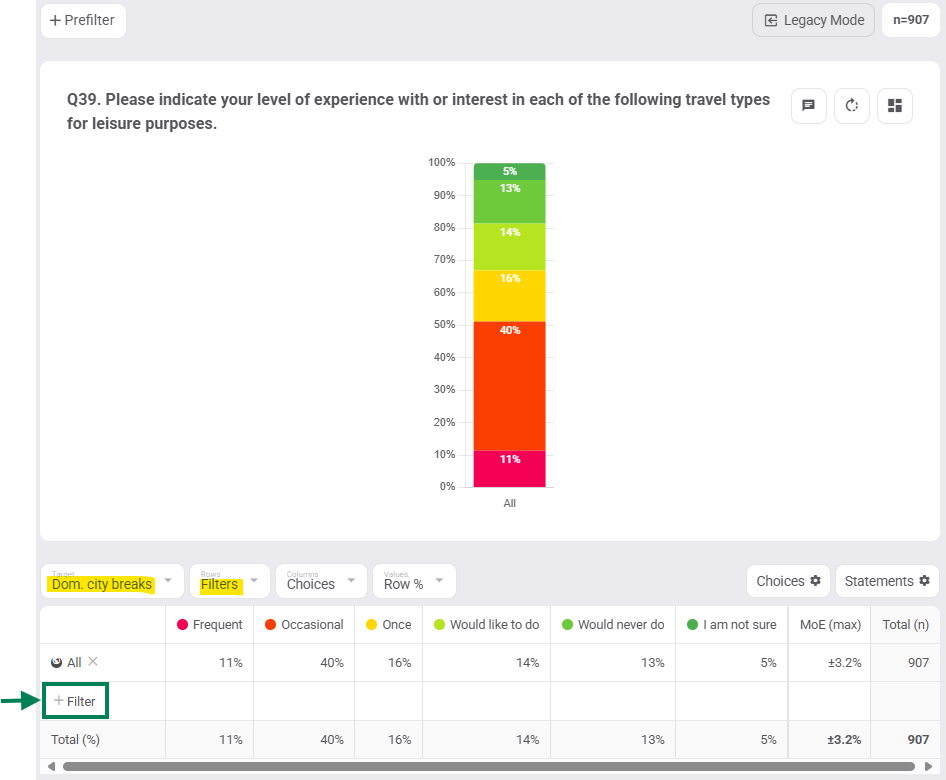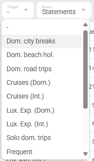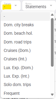To see your results across multiple filters, click the 'Target' dropdown above your table to the left and select a target Statement, e.g. "Domestic city breaks".