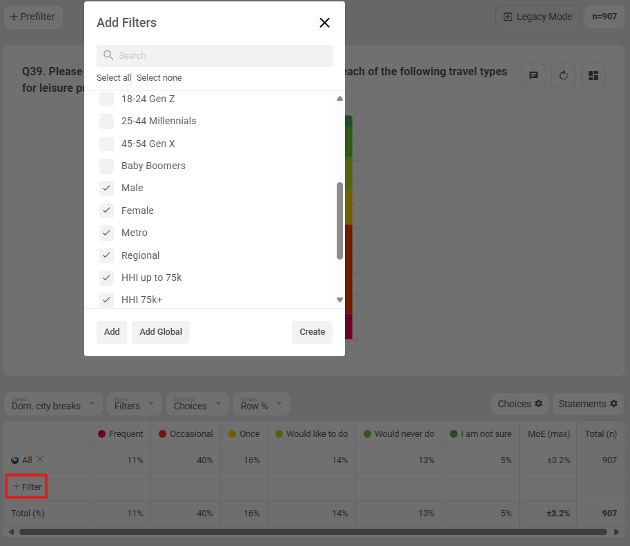 - select your pre filter(s), e.g. by generation: "25-44 Millennials".