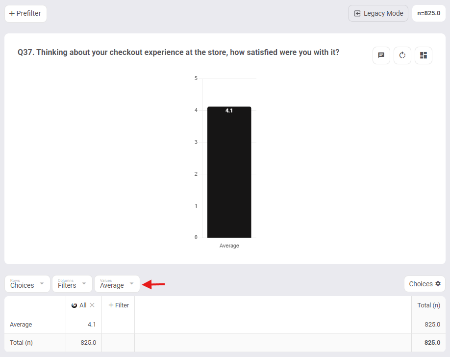 You can now see the average checkout experience satisfaction, i.e. 4.1 out of 5, or "somewhat satisfied" on average. 🎉