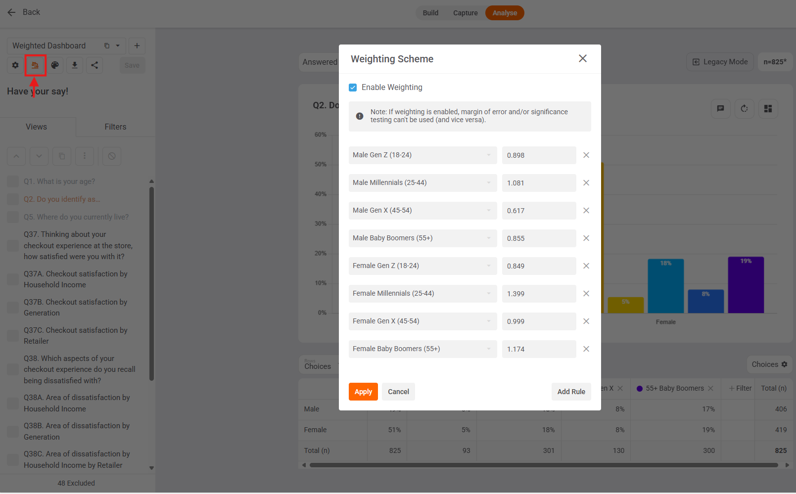 Weight your data to align with a nationally representative audience, or upweight specific segments to match your business profile, or upweight hard to reach groups.