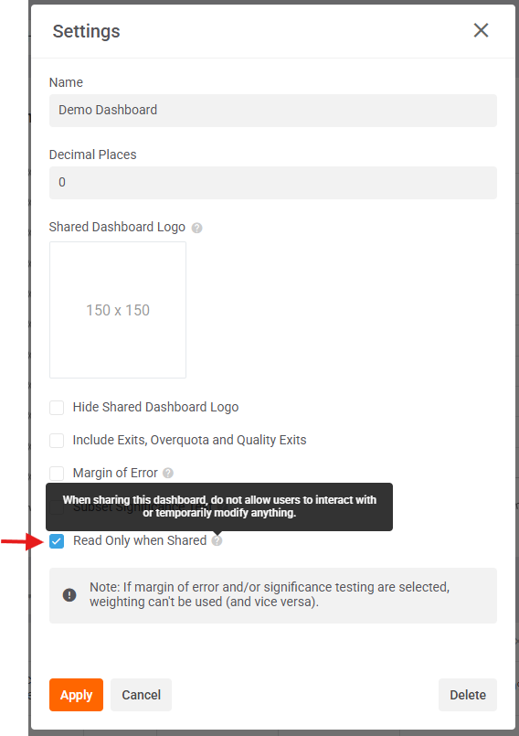Read Only Shared Dashboards
