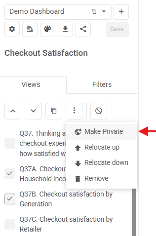 Private views are still visible in your master dashboard but greyed out so you know they're NOT visible anywhere in the shared dashboard.