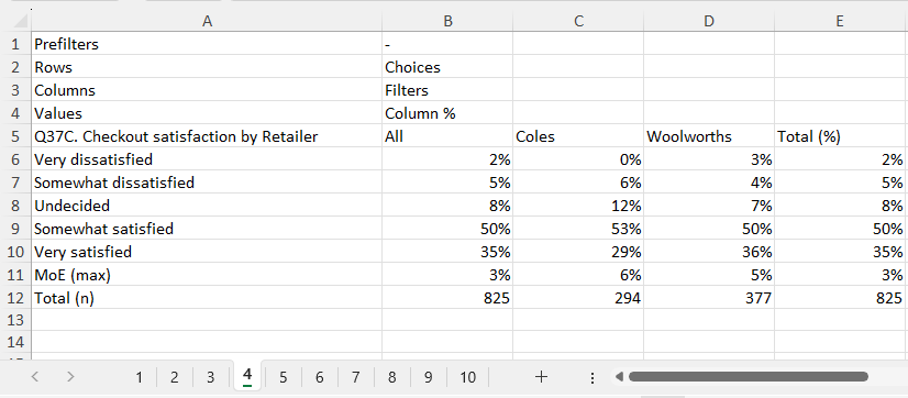 For Choice & Matrix questions, you'll see your Table / Crosstab.