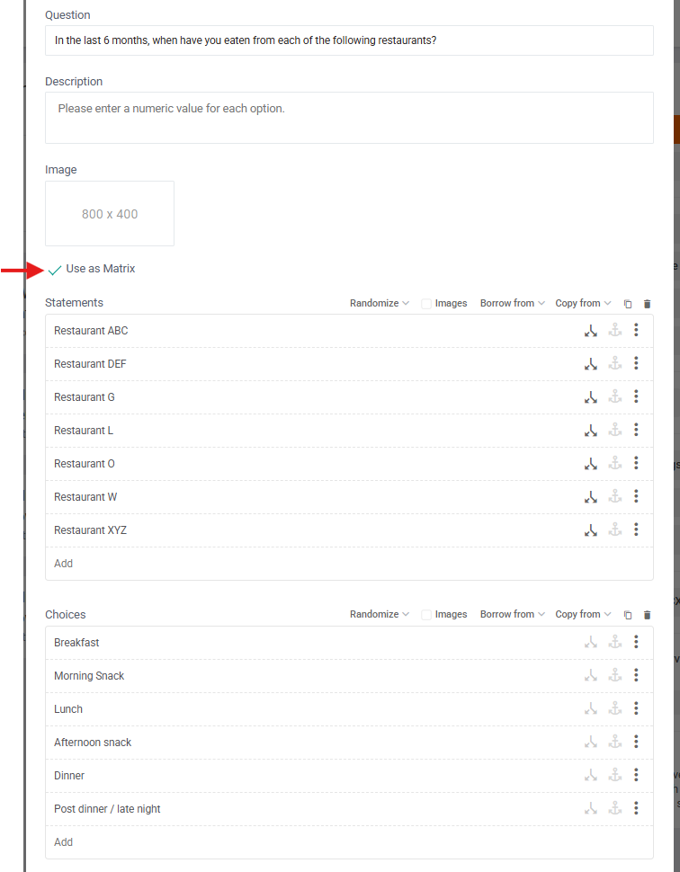 - if Matrix - choices must add up to the 'Total' in each statement.