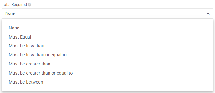 - default is set to 'None' but you can change that to equal, less, or greater than in the dropdown. 'Must Equal' is most common, e.g. 'Must Equal 100'.